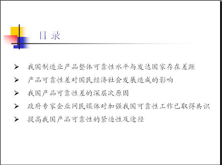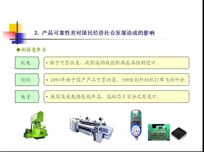 我国制造业产品整体可靠性水平与发达国家存在差距 产品可靠性差对国民经济社会发展造成的影响 我国产品可靠性差的深层次原因 政府专家企业网民媒体对加强我国可靠性工作已取得共识 提高我国产品可靠性的紧迫性及途径 [ Last edited by eurekayan on 2012-3-24 at 15:55 ] |