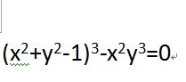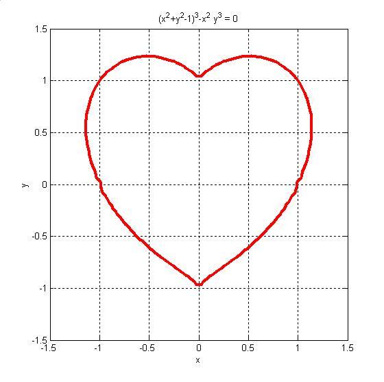 一女生给我个方程,让我帮她编出程序,俺是菜鸟不会啊,求高手帮忙,小弟在此谢过啦; (x^2+y^2-1)^3-x^2y^3=0 [ Last edited by 玉面小飞龙 on 2012-3-24 at 17:38 ] |