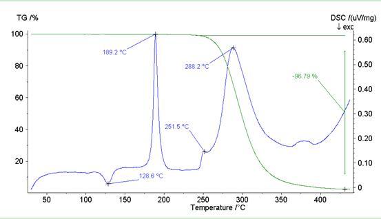 结果如图。是药物在乙腈里面结晶出来做的测试。 以前做过丙酮的,结果是DSC上面会有三个吸热峰,对应脱溶剂、熔化、和分解 这个图出来很奇怪啊,求问:(畅所欲言啊,能回答几个是几个),谢谢了 1、第一个有一个放热峰(无失重)是什么原因? 2、第三个小峰(251.5度那个)是什么? 3、第四个峰后面的曲线为什么是这样? 4、没有脱溶剂峰,说明溶剂在制样前就不用加热已经自己跑掉了吗? |