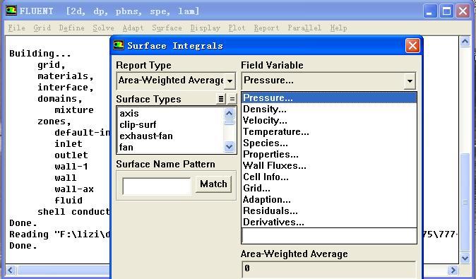 我想知道模型中进口和出口的速度与压力,用鼠标右键点击进口和出口上的某一点Fluent文件中显示的值是一个范围,但是我想要的是一个具体数值,最好是进口面和出口面的平均值,改怎么处理呢?