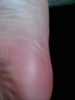 患者描述: 昨天下午3点,左脚踩到钉子上啦,钉子进入左脚,具体位置见上传的图片。受伤时看了一下,留了点血。钉入深感觉有5-8mm,昨天晚上回去看了一下,没有流多少血,担心有淤血,用手挤,挤出两滴液体。现在脚痛,不知怎么解决可以好的快些? |