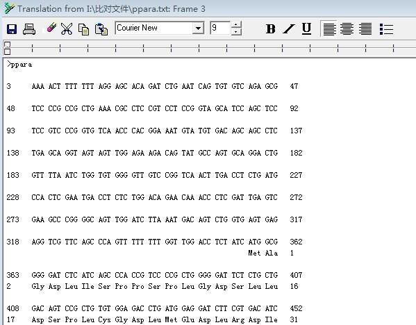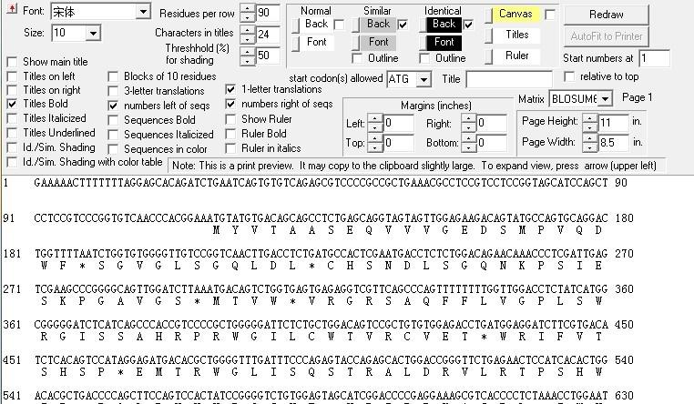 用bioedit的file里面的graph view功能可以编成交错排列的核苷酸和氨基酸序列,但是它识别起始密码子会错误怎么改,里面只有选起始密码子的,它自动识别第一个ATG。如果用sequence里的核苷酸翻译功能也可以,可以自动选取编码区,但是一行它只显示10几个氨基酸,不知道哪里改参数啊,愁啊 |