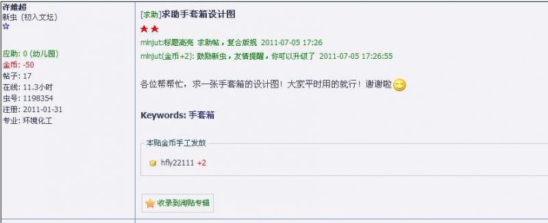 鉴于ID TB-2012 、许维超 分别于2011-07-05日、2012-03-28日,一人发帖求助另一人应助,发帖IP一致,均为222.171.*.*,按照版规PM两个ID。 【马甲帖链接】 https://muchong.com/bbs/viewthread.php?tid=3368590 根据版规,认定ID TB-2012 、许维超 以转移金币为目的,一人在本版发帖求助,另一人应助,为典型的马甲行为! 本版对于马甲求助行为一律严惩,且两个ID已有多次转移金币行为,现决定对ID TB-2012 、许维超 各处以200金币处罚!并没收违规所得。但因无法扣除ID 许维超的金币,仅扣除ID TB-2012 的金币,并禁止这两个ID访问工艺技术版半年。 望其他求助者以此为鉴,切莫以身试法,共同营造一个健康,良好的求应助乐土。 @TB-2012 @许维超 [ Last edited by mjlyxm on 2012-3-28 at 18:51 ] |