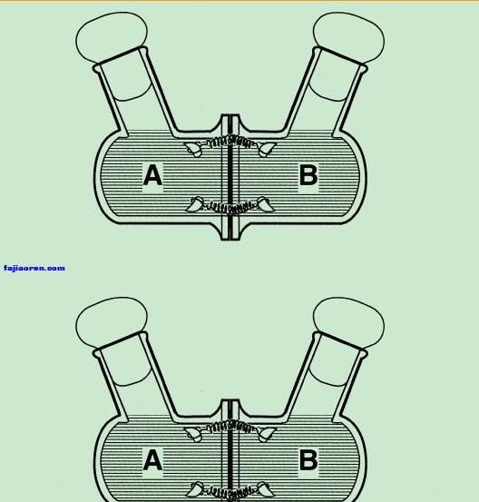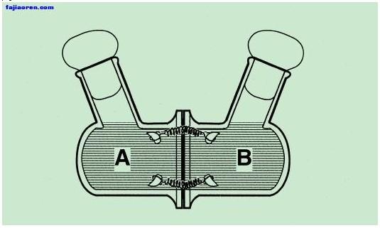 中间的膜使得两菌不能接触,但是代谢物能够自由通过的..
