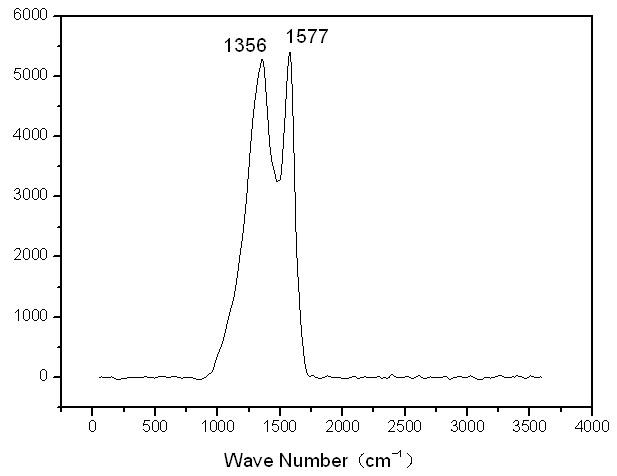求拉曼光谱高手及光谱的理论计算高手解析如下光谱,只有两个峰,一个在1356cm-1,另一个在1577cm-1,跟半石墨化的碳的拉曼光谱几乎一致,峰比石墨的宽,但是我这个却是高分子化合物,其可能的理想结构如示意图所示,现在我遇到的难题是:该光谱对应的结构跟理论结构是否一致?若有高手能计算,一起合作也可以。 [ Last edited by 搁浅蛟 on 2012-3-29 at 19:04 ] |