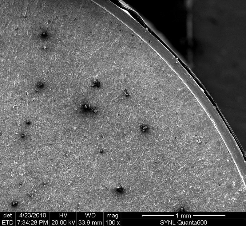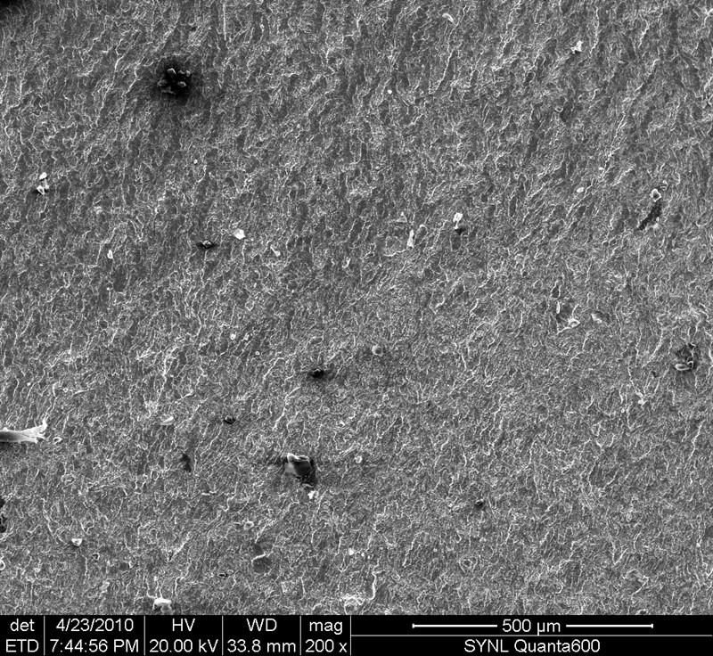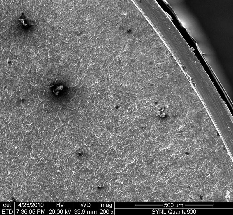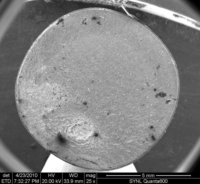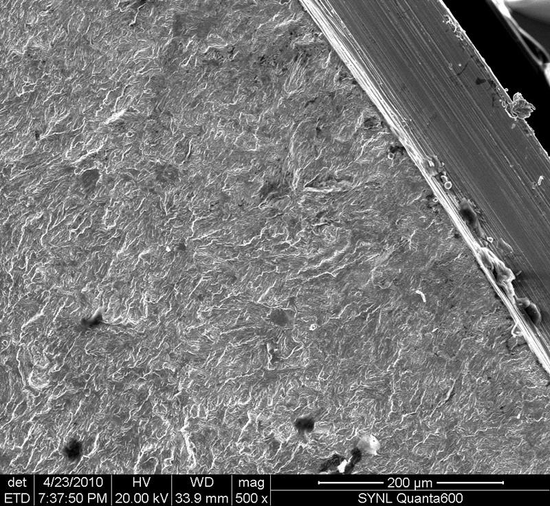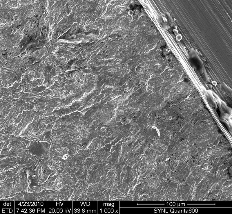 然后,你可以看看扩展区,就是较光滑的地方,有疲劳辉纹,很细的线,电镜,要仔细找。有时候还是很明显的。