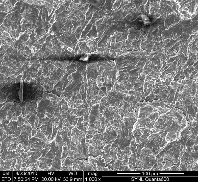 从放大的图片上看有解理断裂特征,建议2000-3000倍数下,看一下有无疲劳条带