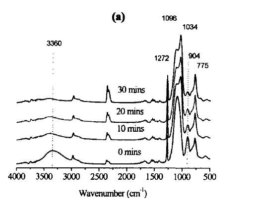文献里看到利用Nicolet 5700或者BRUKER VETOR22 FTIR可以追踪有机硅涂料的固化过程,请问,这个具体是怎么操作的,怎样才可以做这样的测试,红外需要怎样的配置,才能得到如下的图谱?求各位帮帮忙,谢谢大家了! 就是可以测不同时间下的图谱而不用把样品拿出来。 [ Last edited by 寻寻 on 2012-3-31 at 17:14 ] |