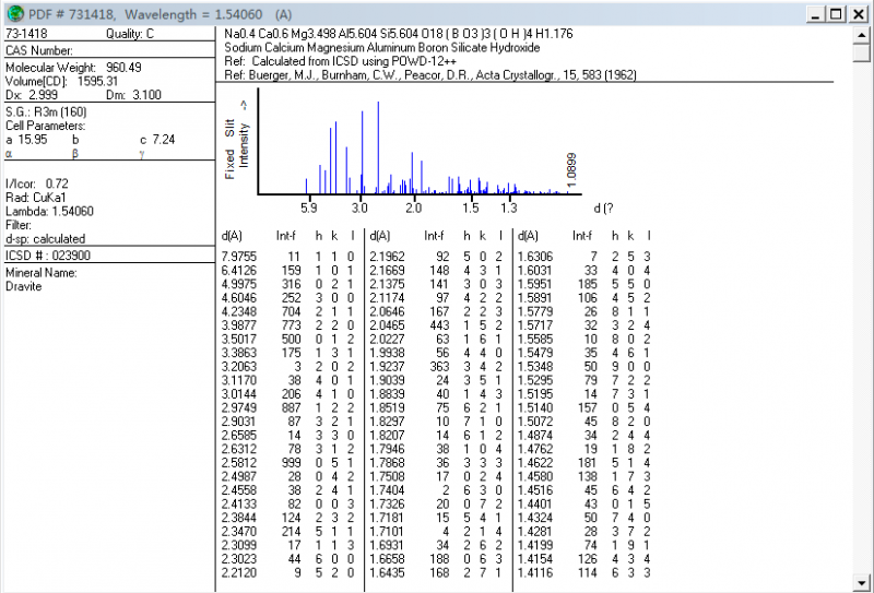 JCPDS卡片 430053 号 请问卡片中,其对应的hkl分别是什么啊,我的JADE上没有
