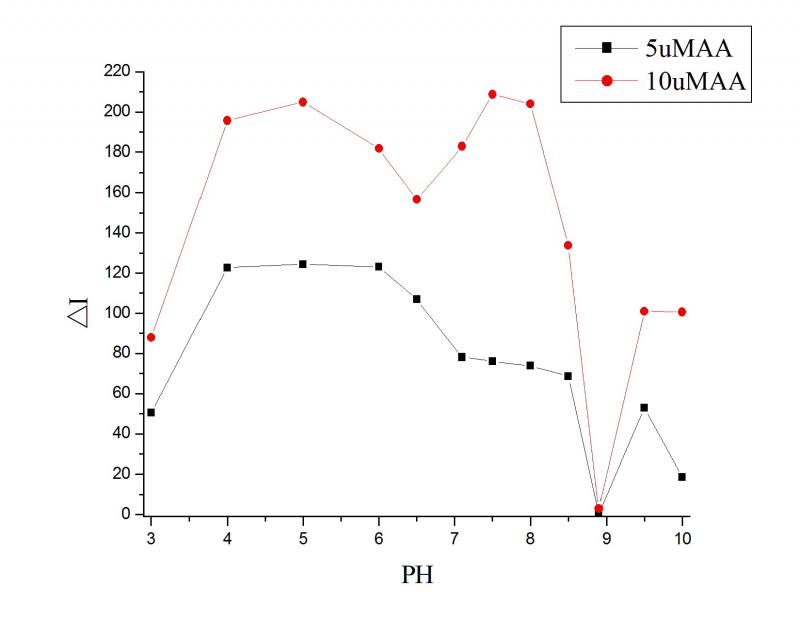 不同PH下荧光能量共振转移发生的情况比较,只有一个点没发生FRET,原因是什么?