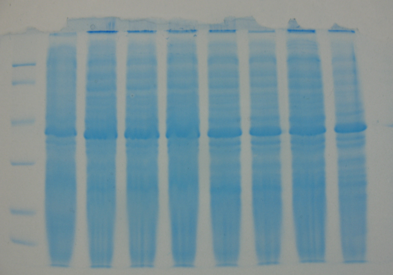 请大家帮忙分析下我的SDS-PAGE蛋白检测胶啊