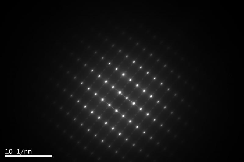 从楼主的衍射照片看来,所选区域应该包含两个相,其中之一为有序相,所以出现了超结构。恭喜楼主,能做出这样漂亮的照片。