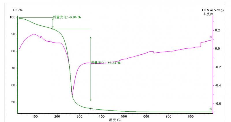 以硝酸铝和正硅酸乙酯为前驱物,溶胶-凝胶法制备硅铝复合氧化物。80度烘干后做TG-DTA:氮气气氛,10度/min。 200度以前TG有失重,但DTA是放热峰,这是为什么?600度以后TG基本无失重,但DTA在600-850度之间这一段向下的平台怎么解释(重复做过,依旧存在),850度以后又有微量放热怎么分析? 请各位高手指教,非常感谢! |