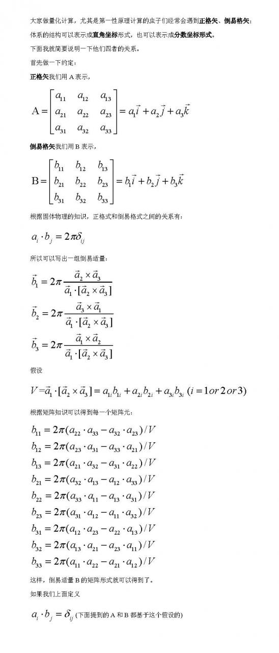 正格矢和倒易格矢以及直角坐标和分数坐标的关系