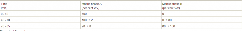 —  mobile phase B: tetrahydrofuran R, 3.9 g/L solution of ammonium acetate R adjusted to pH 5.0 with glacial acetic acid R, acetonitrile R (12:27:61 V/V/V);