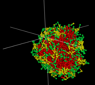 如下图所示,为MS当中DPD模拟的聚集体,想要求出聚集体里每个珠子到聚集体中心的均方回转半径的分布,该怎做呢? 曾经尝试用Mesocite里的Analysis里的Radius of gyration,可是得到的是下图的结果,明显不合理。 结果挺急的,望各位大侠多多帮忙!感激不尽! [ Last edited by jolly1987 on 2012-4-6 at 08:50 ] |