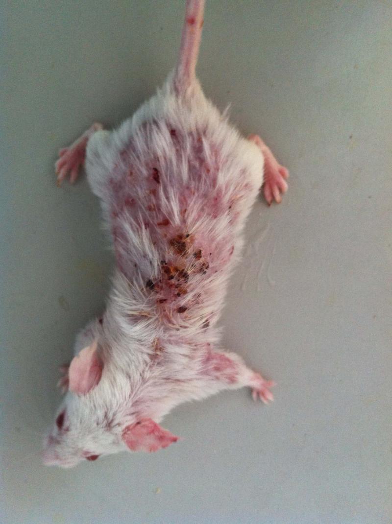 小鼠脱毛并且背部有结痂