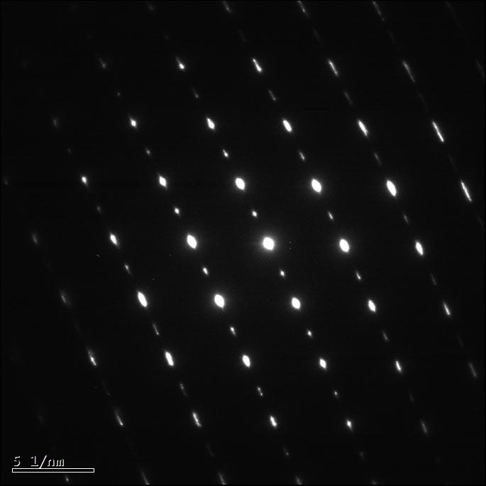 对同一个相进行选区衍射,出现了连套相同的衍射斑点,应该还是具有相同的晶带轴,请问怎么才会出现这样的衍射斑,同时在该相中(灰色)出现了多条灰白色的条状结构,请问这个是怎么形成的。我的材料是TiAl合金的高温变形后的。 |
