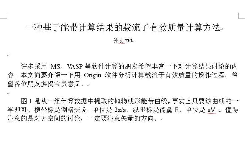Ò»ÖÖ»ùÓÚÄÜ´ø¼ÆËã½á¹ûµÄÔØÁ÷×ÓÓÐЧÖÊÁ¿¼ÆËã·½·¨ ×î½ü,һЩ³æÓÑ·¢À´Õ¾ÄÚÏûÏ¢,ѯÎÊÈçºÎ´ÓÄÜ´ø¼ÆËã½á¹û¼ÆËãµç×ÓÓÐЧÖÊÁ¿,´Ë´¦,½èÓÃnfsexµÄÊý¾Ý,ÑÝʾÒÔϾßÌå²Ù×÷¹ý³Ì.ÓÉÓÚÊý¾Ý¿ÉÄÜÊÇnfsexÒÔºó·¢ÎÄÕÂÒªÓõÄ,±¾ÈËÈÏΪÌṩÎĵµ×ÊÁϲ»Í×,Òò´ËÖÆ×÷³ÉͼƬ(Êý¾ÝÒѾ½øÐÐÁËɾ½ÚºÍº¯Êý´¦Àí,²»Í¬ÓÚnfsexµÄÔʼÊý¾Ý,ÏàÐŲ»»áÇÖº¦nfsexµÄÀûÒæ),¹©¸÷λ²Î¿¼. ¸ÐлnfsexµÄÐÅÈÎ,½«ÔʼÊý¾Ý·¢¸øÎÒ´¦Àí,ÈçÊDzÅÓб¾ÌûµÄ·¢±í. ÏàÐÅÄúÒѾѧ»áÁË£¬Ö»ÒªÅªÇ嵥룬×Ðϸ¼ÆË㣬¾ÍÒ»¶¨»áµÃµ½ÕýÈ·½á¹û£¬×£¸÷λѧҵÓгɣ¬ÊÂҵ˳Àû¡£ ¸½¼þΪÒÔÉÏͼƬ´ò°üѹËõÎļþ[ Last edited by Ëï?ª730 on 2012-4-7 at 00:03 ] µç×ÓÖÊÁ¿ÊÇ9.1x10^-31Kg [ Last edited by Ëï?ª730 on 2013-4-5 at 15:34 ] |