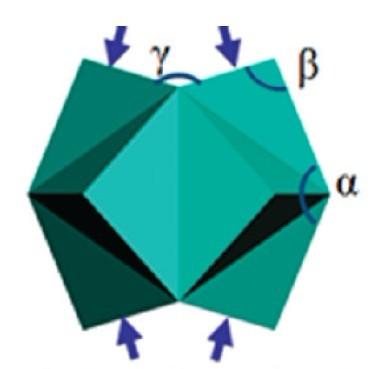 用diamond能不能作出下图这种形貌的原子组成的结构图来,就是一个原子一个原子的显示的?另外对于面心立方来说,下图的a,b,r角度分别是141,90,141度时说明晶面为221面,如果体心立方的三个角度也分别是141,90,141,能否说明这个体心立方是否也是由221面组成呢? |