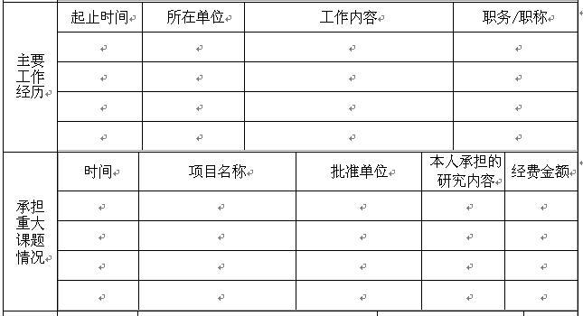 请问各位写特助的博士后:博士后特助申请书中有一栏“主要工作经历”,看到有些朋友说是写,参与了哪些课题研究,承担了其中什么工作等等,但表格后面明明是,填写“职务和职称”还有工作内容,感觉需要填写**--**年在***大学任教,职称是讲师,之类的,而不是参与***课题研究,各位是如何填写的?还有后里的“承担重大课题情况”,如果前面“主要工作经历”已经写了参与项目,这里再写,是否重复,大家如何写的? |