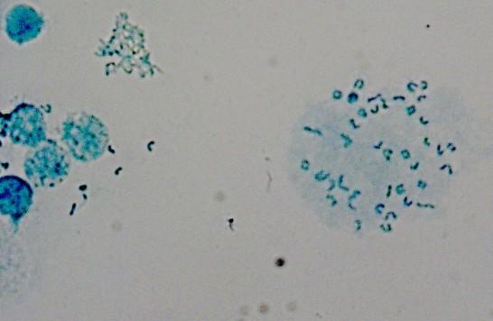 做的是EScell的染色体制备,加入低渗液5min之后直接加入7滴卡诺氏固定液,为啥就出现絮状物了?没在镜下看。。现在在第二次固定,还是有那絮状的东西。。对实验有何影响么?各位大侠讨教了。。另附第一次做的染色体。。40倍照的,油镜坏了。。汗。。大家给看看还有啥需要改进的~ |
