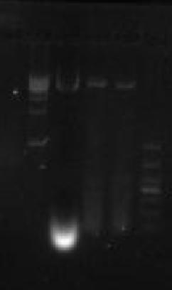 下面这张图从左到右依次为:1kb的marker,重组质粒,单切,双切,DL-1000marker。marker都是宝生物的