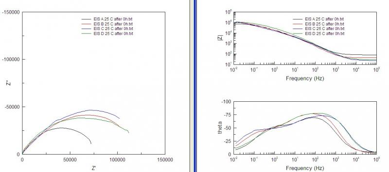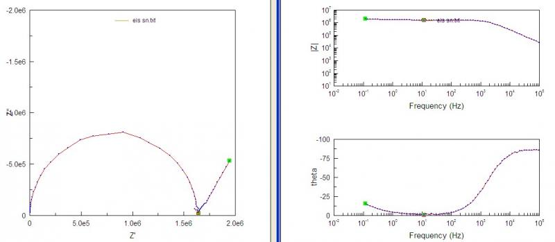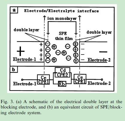 (1)我测的纯的分子塑晶固态电解质,没加碘和碘化物的阻抗图如图1,这应该就是阻塞电极标准的图了吧,但是阻抗非常大,为什么纯的也有这样的图? 不是没有离子在里面吗?