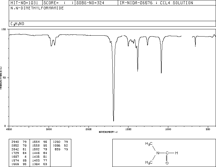 求DMF的标准红外谱图(标有峰的)