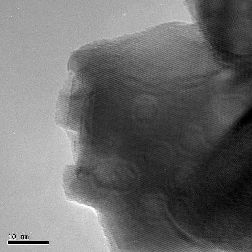 介孔二氧化硅制备中怪异的晶体条纹的TEM图,大家帮忙判断下可能是啥东西?