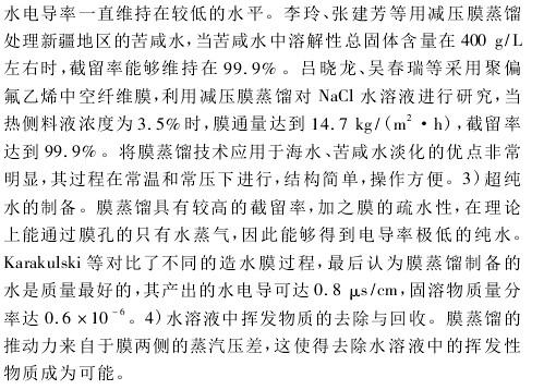 1)膜蒸馏现阶段还没有在工业中应用,现阶段还处于实验室阶段;