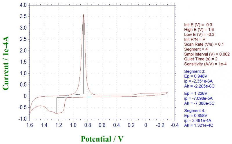 看到有人用裸金电极扫0.5 M H2SO4 求金电极的真实面积,但具体步骤如何?附上一个金电极扫 H2SO4 的CV,能否以此为例计算一下?谢谢! [ Last edited by yezh on 2012-4-14 at 20:53 ] |