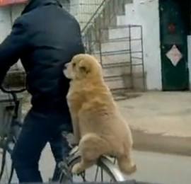 会坐自行车的小狗,好乖啊!你家的小狗会做自行车吗?已有4人参与