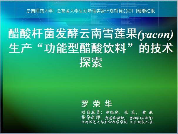 【课件】醋酸杆菌发酵云南雪莲果(yacon)生产“功能型醋酸饮料”的技术探索