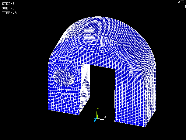 ANSYS模拟混凝土门垛受压,怎样看其内部是否产生裂缝。General Postproc----Plot Results------Concrete Plot----Crack/Crush结果出现下图,看不出来是否有裂缝