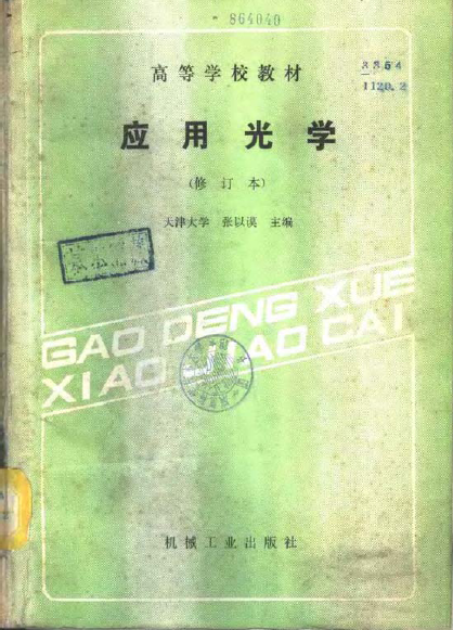 应用光学 系列教材 1、应用光学-张以谟1982 2、应用光学例题与习题集 3、应用光学(安连生第三版) 4、物理光学与应用光学习题及选解 5、应用光学(安连生第2版本) 6、光学设计手册(李士贤1990) |