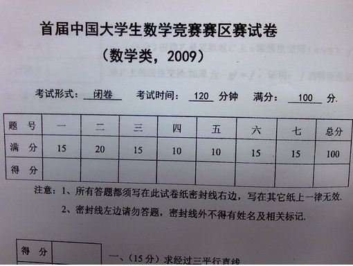 本内容由用户自主发布,如果其内容涉及到知识产权问题,其责任在于用户本人,如对版权有异议,请联系邮箱:xiaomuchong@tal.com - 附件 1 : 首届中国大学生数学竞赛试卷(2009年,非数学类).pdf