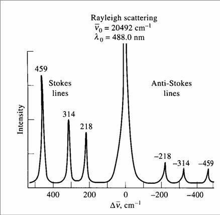 拉曼光谱有stokes线和Anti-stokes线两种,stokes线波长长,频率变小,波数变化△ν应为负的,Anti-stokes线波长长,频率变大,波数变化△ν应该为正的,可如图所示,与我想的相反,是我理解错误了吗?请高手解答。 rayleigh scattering, stokes lines and anti-stokes lines |