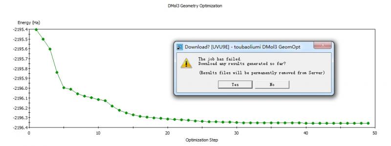 我用Dmol3进行几何优化时,MS计算energy到第50步时,就失败了!
