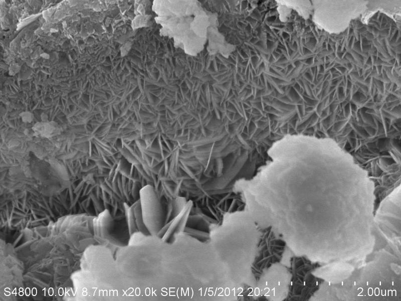 是针状的,还是竖立的薄片状的?而且如果是28d的AFt的尺寸明显太小了,这应是生长在砂浆孔隙的AFm