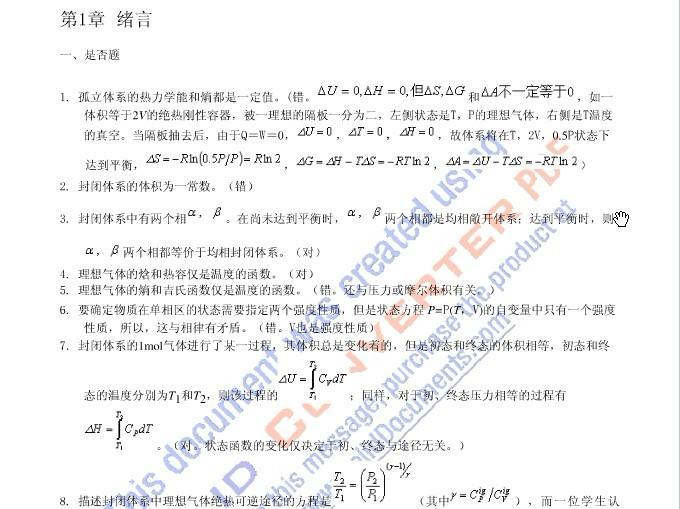 【求助】谁有化工热力学,马沛生版的课后习题答案