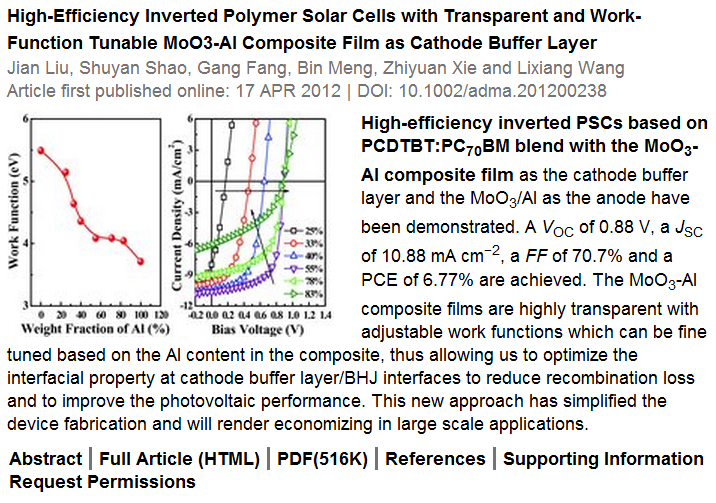 有机光电文献资料 | 光电材料与器件物理 | 太阳能电池 | 有机太阳能电池方向 |