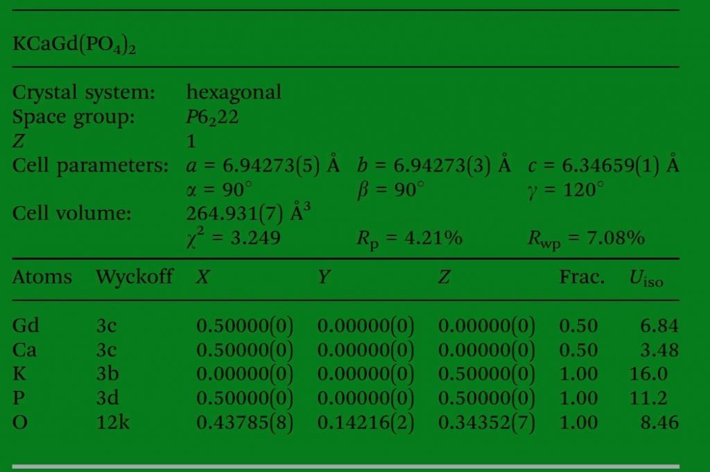 | KCaGd(PO4)2或类似结构(KMLn(PO4)2)的CIF文件,做精修用,谢谢各位大侠! |