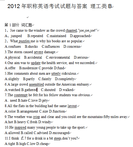 【真题资源】2012年职称英语考试理工类B级真题与答案