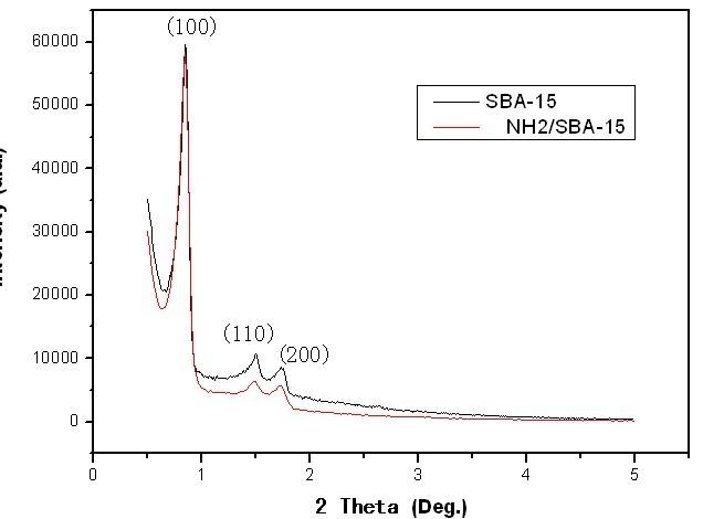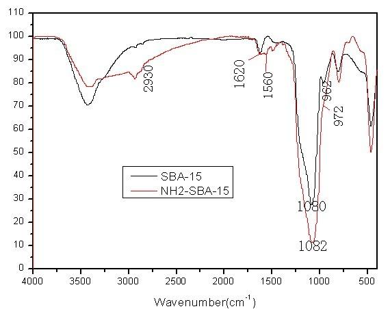 不确定氨基改性成功没有? 红外1560这个地方很多文献上说是NH的振动峰,而且962,到972的转变说明原SBA-15上的OH官能团减少,文献上说是氨基嫁接成功的结果。 但是,小角衍射100面为什么峰还是这么强,嫁接后有序度应该降低,强度应该减弱才对。 我怀疑没有嫁接成功,可又怎么解释红外上的特征峰的出现及变化? 望高手指点。 另外,如果有人做这个,方便的话发个红外图我看看。 谢谢。。。 |