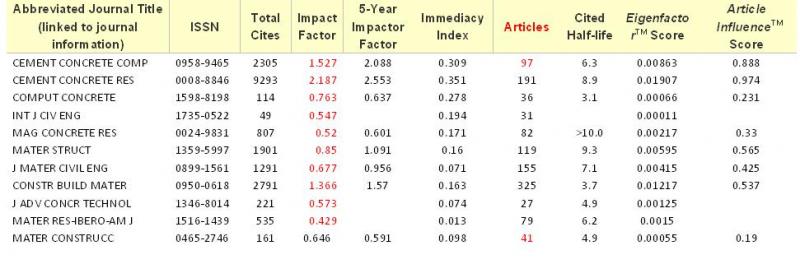 现经本人收集整理适合发表混凝土材料的国际SCI期刊名录提供给大家,仅供参考。 ---------------------------------------------------- 适合 混凝土材料 发表的SCI期刊清单及其最新影响因子情况见图片 ------------------------------------------------------ 另将期刊基本信息(源自http://www.thomsonreuters.com)并增加中文名称、刊物网站地址,列如下供参考: ---------------------------顶贴也是一种美德!--------------------------- 或:本帖详情参见本帖附件--------------------------------------- CEMENT AND CONCRETE RESEARCH 《水泥与混凝土研究》英国 Monthly ISSN: 0008-8846 PERGAMON-ELSEVIER SCIENCE LTD, THE BOULEVARD, LANGFORD LANE, KIDLINGTON, OXFORD, ENGLAND, OX5 1GB 1. Science Citation Index 2. Science Citation Index Expanded http://www.elsevier.com/wps/find ... ome/352/description MAGAZINE OF CONCRETE RESEARCH 《混凝土研究杂志》英国 Bimonthly ISSN: 0024-9831 THOMAS TELFORD PUBLISHING, THOMAS TELFORD HOUSE, 1 HERON QUAY, LONDON, ENGLAND, E14 4JD 1. Science Citation Index 2. Science Citation Index Expanded http://www.editorialmanager.com/macr/ MATERIALS AND STRUCTURES 《材料与结构》荷兰 Monthly ISSN: 1359-5997 SPRINGER, VAN GODEWIJCKSTRAAT 30, DORDRECHT, NETHERLANDS, 3311 GZ 1. Science Citation Index Expanded http://www.springer.com/materials/mechanics/journal/11527 JOURNAL OF MATERIALS IN CIVIL ENGINEERING 《土木工程材料杂志》美国 Monthly ISSN: 0899-1561 ASCE-AMER SOC CIVIL ENGINEERS, 1801 ALEXANDER BELL DR, RESTON, USA, VA, 20191-4400 1. Science Citation Index Expanded http://ascelibrary.org/mto/ CEMENT & CONCRETE COMPOSITES 《水泥与混凝土复合材料》英国 Bimonthly ISSN: 0958-9465 ELSEVIER SCI LTD, THE BOULEVARD, LANGFORD LANE, KIDLINGTON, OXFORD, ENGLAND, OXON, OX5 1GB 1. Science Citation Index Expanded http://www.journals.elsevier.com/cement-and-concrete-composites/ COMPUTERS AND CONCRETE 《计算机与混凝土》韩国 Bimonthly ISSN: 1598-8198 TECHNO-PRESS, PO BOX 33, YUSEONG, DAEJEON, SOUTH KOREA, 305-600 1. Science Citation Index Expanded http://technopress.kaist.ac.kr/?journal=cac&subpage=6 JOURNAL OF ADVANCED CONCRETE TECHNOLOGY 《混凝土先进技术杂志》日本 Tri-annual (注:2008年开始被SCI收录) ISSN: 1346-8014 JAPAN CONCRETE INST, SOGO HANZOMON BLDG 12F, NO 7, KOJIMACHI 1-CHOME, CHIYODA-KU, JAPAN, TOKYO,102-0083 1. Science Citation Index Expanded http://www.jstage.jst.go.jp/browse/jact CONSTRUCTION AND BUILDING MATERIALS 《建筑与建筑材料》英国 Bimonthly ISSN: 0950-0618 ELSEVIER SCI LTD, THE BOULEVARD, LANGFORD LANE, KIDLINGTON, OXFORD, ENGLAND, OXON, OX5 1GB 1. Science Citation Index Expanded http://www.elsevier.com/wps/find ... ription#description MATERIALES DE CONSTRUCCION 《建筑材料》西班牙 Quarterly ISSN: 0465-2746 INST CIENCIAS CONSTRUCCION EDUARDO TORROJA, SERRANO GALVACHE, 4, MADRID, SPAIN, 28033 1. Science Citation Index Expanded http://materconstrucc.revistas.csic.es/index.php/materconstrucc Materials Research-Ibero-american Journal of Materials 《材料研究》巴西 Quarterly ISSN:1516-1439 UNIV FED SAO CARLOS, DEPT ENGENHARIA MATERIALS, LABORATORIA DE MATERIAIS VITREOS, CAIXA POSTAL 676, SAO CARLOS, BRAZIL, 13565-905SP 1. Science Citation Index Expanded http://www.scielo.br/scielo.php? ... ;lng=en&nrm=iso CEMENT WAPNO BETON 《水泥、石灰、混凝土》波兰 Bimonthly (注:2008年开始被SCI收录) ISSN: 1425-8129 STOWARZYSZENIE PRODUCENTOW CEMENTU, UL LUBELSKA 29 LOK 4-5, KRAKOW, POLAND, 30-003 1. Science Citation Index Expanded www.cementwapnobeton.pl/ INTERNATIONAL JOURNAL OF CIVIL ENGINEERING《国际土木工程学报》伊朗 Quarterly 1735-0522 IRAN UNIV SCI & TECHNOL, COLL CIVIL ENG, PO BOX 16765-163, NARMAK, IRAN, TEHRAN, 16844 http://ijce.iust.ac.ir/index.php?slc_lang=en&slc_sid=1 1. Science Citation Index Expanded http://www.iust.ac.ir/ijce/index.php?slc_lang=en&slc_sid=1 适合 混凝土材料 发表的SCI期刊 最新影响因子情况 ———————————— -------------------- - 顶贴也是一种美德! - ----------------[ Last edited by tjcdp on 2012-4-21 at 19:33 ] |