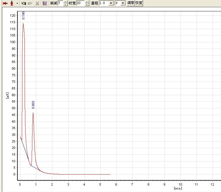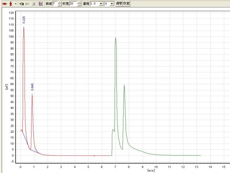 请大家帮忙指导下,看看我的这个图的问题。 只是我在将催化剂还原前在线进样的出峰情况,只有氢气和氮气,色谱中但其作为载气。 疑惑如下:1. 初始位置为什么没有在0点,或者附近?为什么离得那么远呢? 2. 这两个峰是什么峰?听说有一个是进样峰,什么是进样峰?怎么消除它? 3. 切换六通阀后等待多久将阀切换回原来的位置? 4. 我的流量计为什么设定的流量为4ml/min,但显示的就是12ml/min呢? 我又进了次样后发现似乎那个之前认为的峰并不是H2的峰,而只是基线漂移的问题。对比下图可以发现。而且,发现进样后没有H2出峰。这是怎么回事? 请大家帮我分析下。第二个图是后面补上的。大家看看 谢谢大家能帮我解答。 催化剂还原前还原气的出峰情况 [ 来自科研家族 骷髅党 ] 再次进样后对比图,红色的线为旋转六通阀10秒后直接旋回到原来位置的出峰情况。绿线为旋转六通阀后等基线稳定,没有将六通旋回原来位置。感觉前面的红线就是后面的基线漂移情况。而且没有H2峰。 [ Last edited by kealonjd on 2012-4-23 at 14:10 ] |