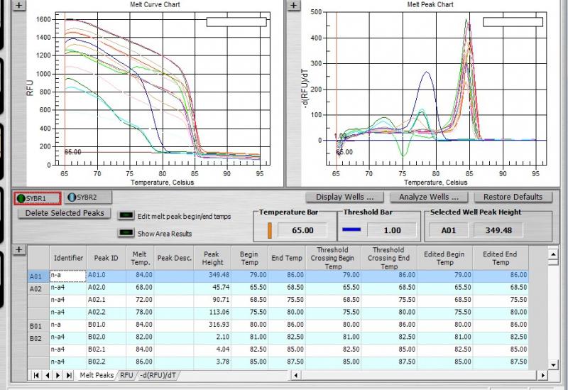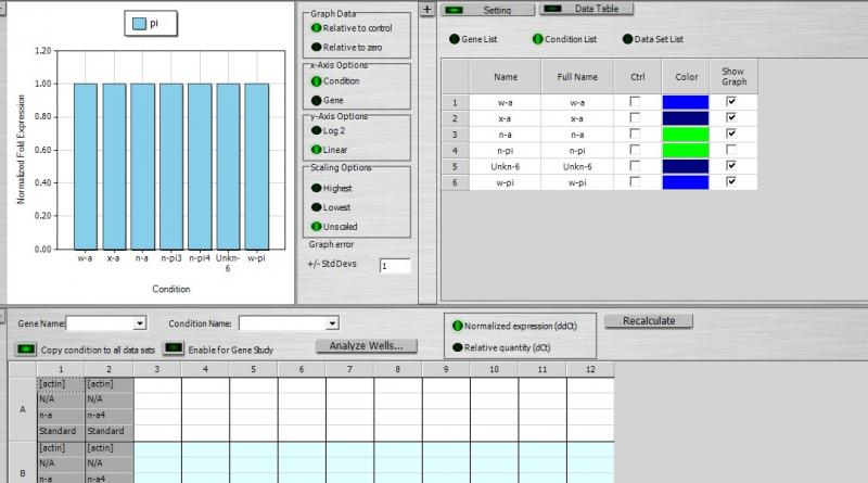 我用IQ5做了几次荧光定量-pcr预实验,但是结果总是显示基因的表达量一样。是不是我的plate设置有问题?还有就是为什么基因表达显示会一样呢,情动这块的同学们帮忙解答一下。 板面设置,绿色为ACTIN,蓝色为目的基因 actin 溶解曲线 目的基因-溶解曲线 基因输出结果 |