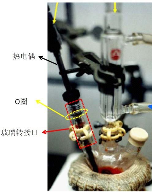 这个热电偶太粗了,使用不锈钢的K型热电偶就可以,直径1mm左右就可以了,长度几十厘米长, 淘宝上面一个就20块钱,这个不锈钢的热电偶是可以任意弯曲的,做一般的有机热注射反应一点不影响, 使用一个最简单的橡胶塞,开一个小孔,插进去即可,当然孔要开小一些,这个密封性是相当好的, 如果使用温度很高,250度以上,需要一个磨口的延长管,避免橡胶软化, 热注射实验,所有的磨口都需要涂上真空脂密封的,国产的真空脂不行的,一抽真空,磨口呼呼的往里面进气,热电偶和玻璃磨口检查是否漏气,方法很简单,抽真空后,把气路闭了,过几分钟在放气进入,如果还能听到进气声音,说明密封没有问题,如果漏气,就没动静了。 |