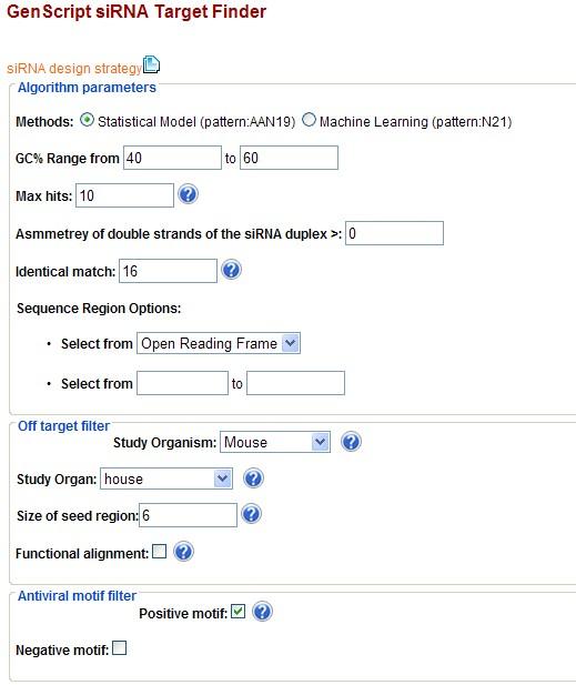 熟悉siRNA设计的虫友们欢迎前来指导,懂相关软件的请不吝赐教,多谢了